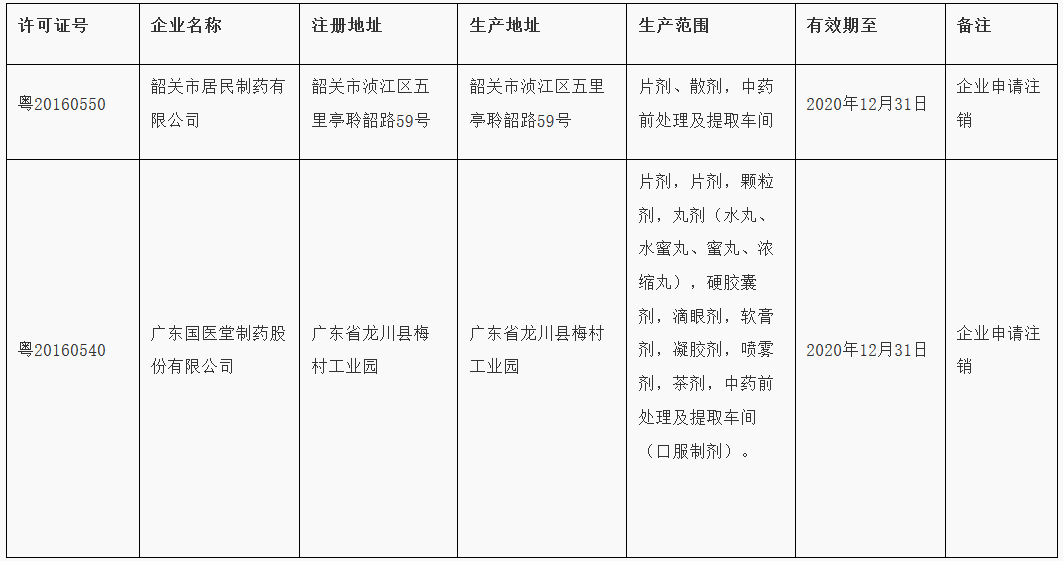 管理法》、《中华人民共和国药品管理法实施条例》和《药品生产监督管理办法》有关规定,依法注销并收回韶关市居民制药有限公司、广东国医堂制药股份有限公司的《药品生产许可证》。