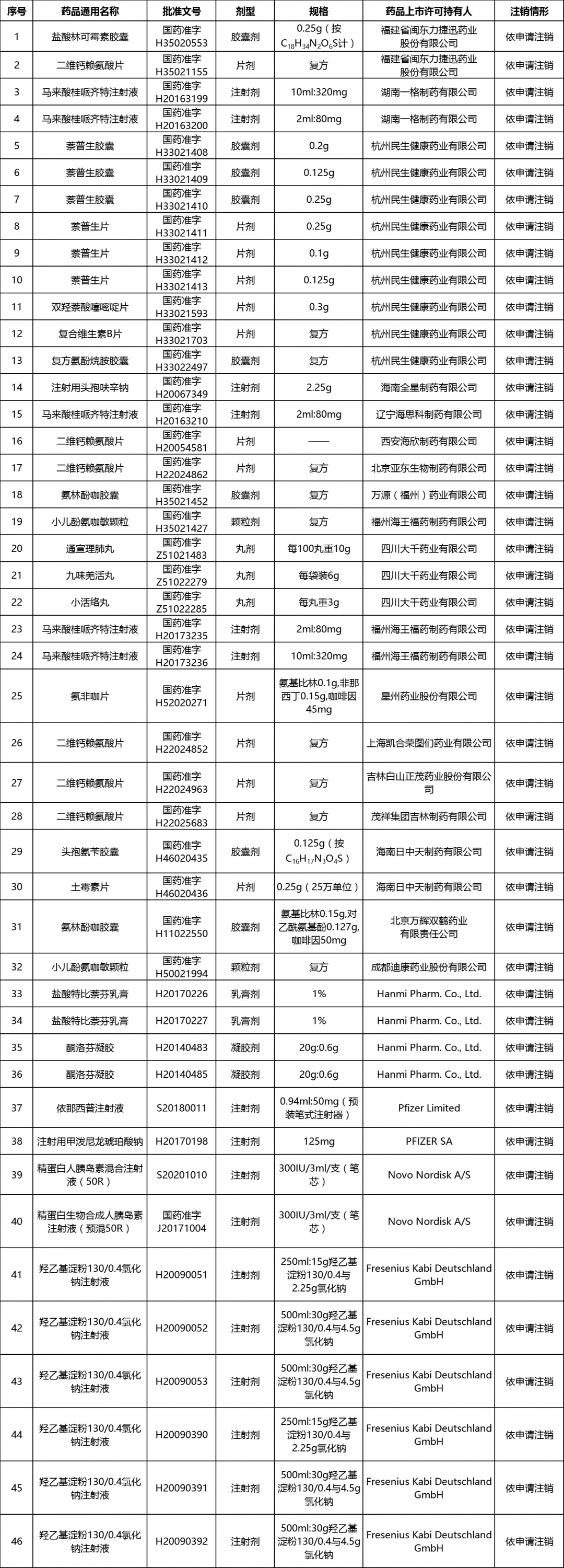 国家药监局关于注销盐酸林可霉素胶囊等46个