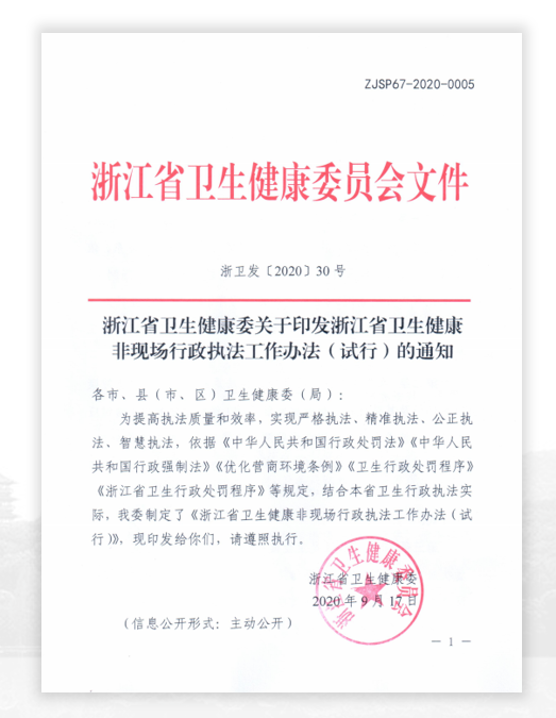健康非现场行政执法工作办法(试行)》(以下简称《办法》)正式施行,《办法》的施行,将为卫生健康领域非现场执法开启大门。