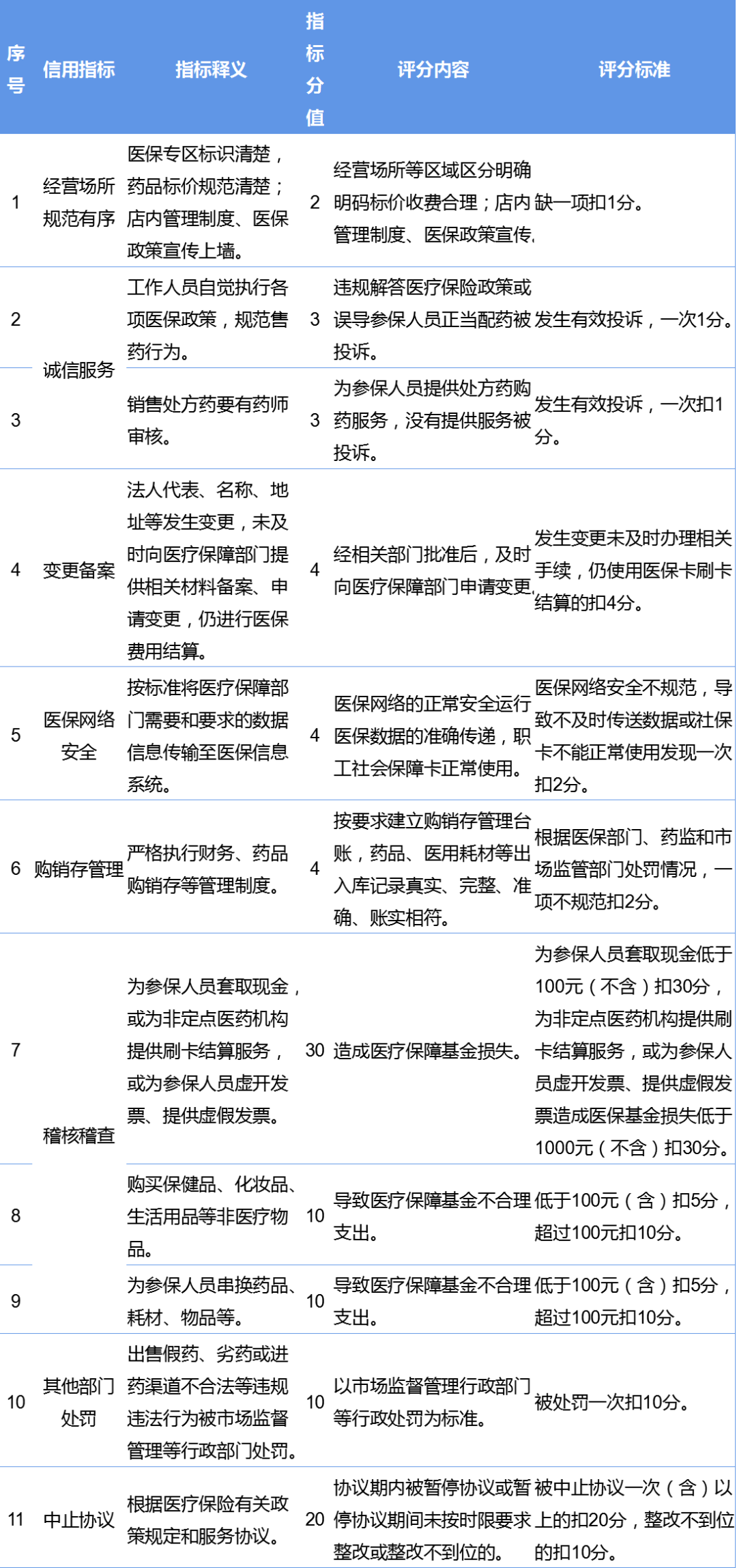 药店将被终止医保服务协议,且3年内不再签署协议;信用为E级的药品(医用耗材)生产、配送