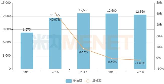 近年中国公立医疗机构终端阿莫西林颗粒剂销售情况(单位:万元)