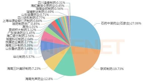 企业,其中,石药中诺药业、联邦制药和海南先声药业的市场份额位居前三。一致性评价方面,在此之前,海南先声药业、湖南科伦制药均已过评。