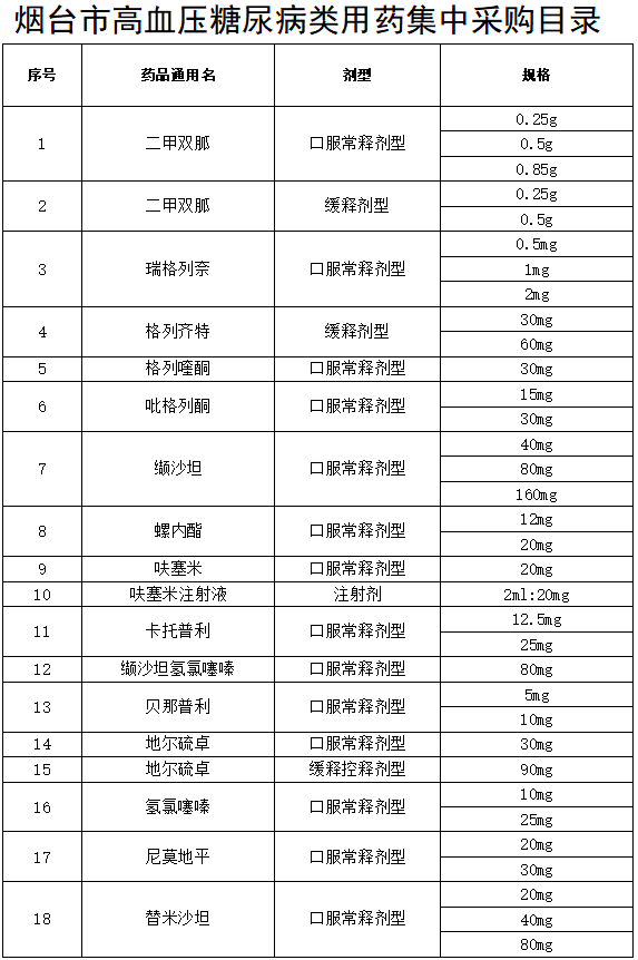 药品集中采购,共涉及卡托普利片、盐酸二甲双胍片、格列美脲片、阿卡波糖片等15个品种。