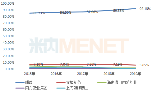 图3:2015-2019年中国公立医疗机构终端依西美坦片厂家竞争格局