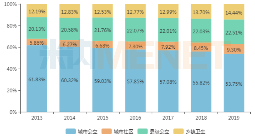 米内网数据显示,2019年中国城市公立