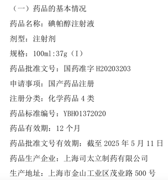 司太立在公告中表示,上海司太立获得国家药监局签发的碘帕醇注射液《