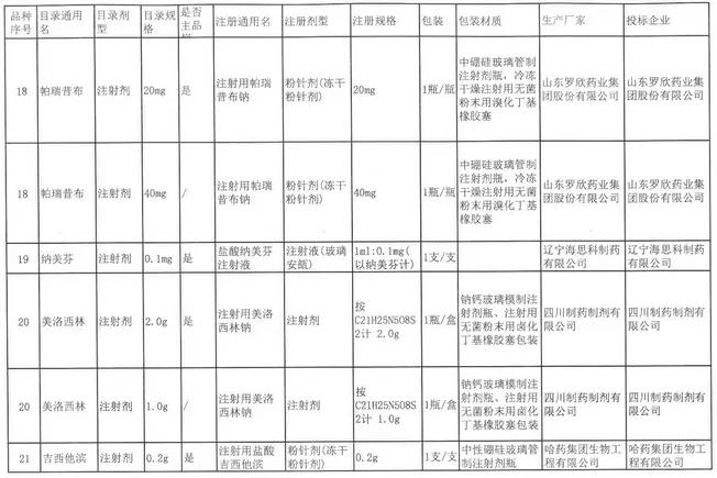 采购数量Top 3企业。21个品种中,仅头孢呋辛(罗欣)、哌拉西林舒巴坦(苏州二叶制药)、托烷司琼(齐鲁)、左卡尼汀(瑞阳制药)、吡拉西坦(上海现代哈森)、纳美芬(辽宁海思科)6个品种的中选企业为采购数量前三名企业,剩余15个品种的中选企业都是非前三企业。例如,莫西沙星注射剂2019年采购量前三名企业分别为拜耳、成都天台山、南京优科,最后四川科伦拟中选;吉西他滨注射剂2019年采购量前三名企业分别为江苏豪森、正大天晴、礼来,最后哈药生物为拟中选企业。