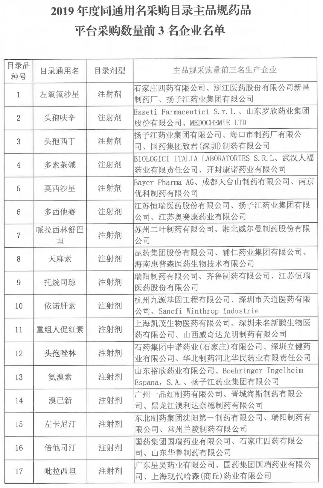 值得关注的是,除了几个大品种市场面临洗牌外,对比山西发布的《2019年度同通用名采购目录主品规药品平台采购数量前3名
