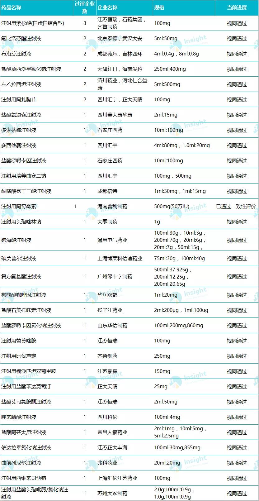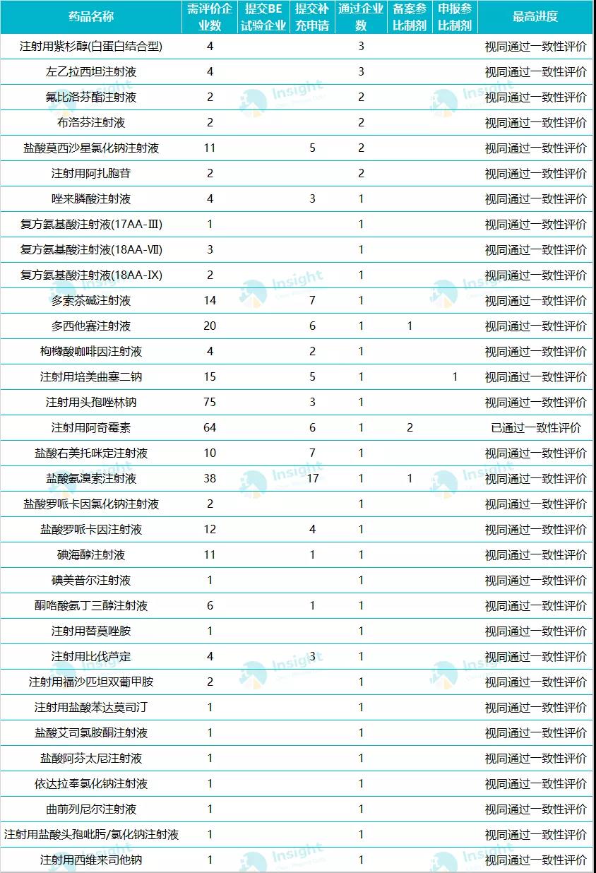 在目前已过评的 31 个注射剂品种中,只有海南普利制药的注射用阿奇霉素通过一致性评价,其余均为视同通过;且这 31 个品种中已有注射用培美曲塞二钠、氟比洛芬酯注射液、右美托咪定注射液、注射用紫杉醇(白蛋白结合型)进入国家带量