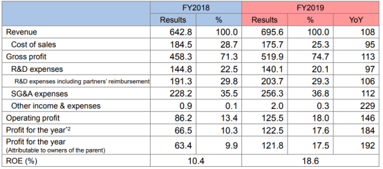 图表1:卫材2019年财务情况(单位:十亿日元)