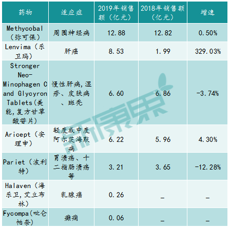 图表4:2019年卫材在中国区的产品销售情况