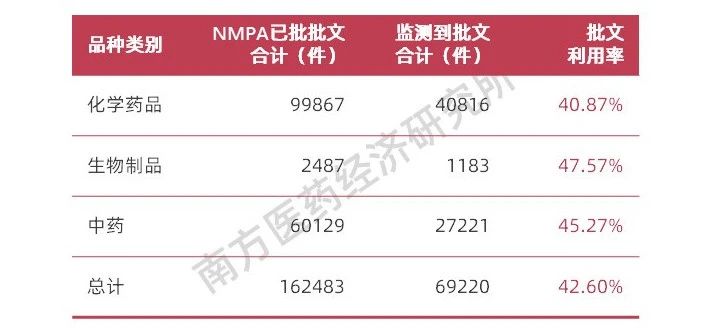 图表7 我国药品批文利用率表