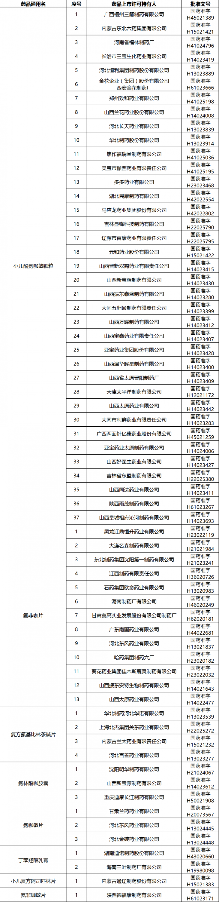 11月16日,国家药监局发布公告称,根据《中华人民共和国药品管理法》第八十三条等有关规定,药监局组织对小儿酚氨咖敏颗粒、氨非咖片、复方氨基比林茶碱片、氨林酚咖胶囊、氨咖敏片、丁苯羟酸乳膏、小儿复方阿司匹林片、氨非咖敏片等8个品种开展了上市后评价。