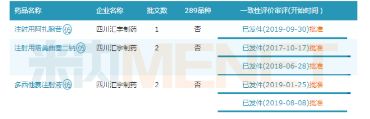 肿瘤注射剂的企业, 汇宇制药已有3个抗肿瘤注射剂过评,分别为注射用培美曲塞二钠、多西他赛注射液、注射用阿扎胞苷。汇宇制药的紫杉醇注射液注册办理状态已变更为“在审批”,若顺利获批将成为第2家过评企业、收获第4款过评注射剂。